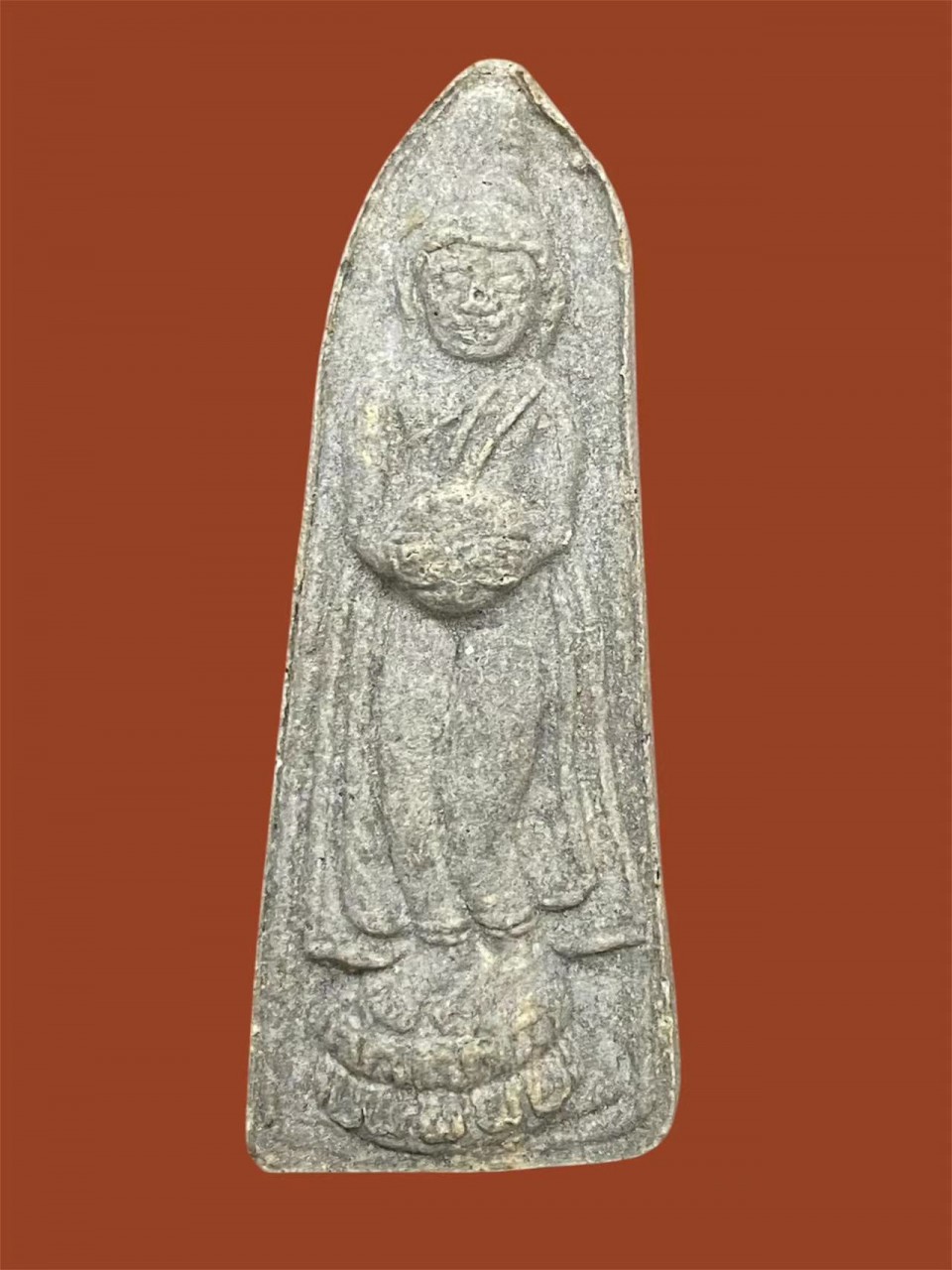 พระผงพรายสิวลี พิมพ์อุ้มบาตร หลังจารมือ