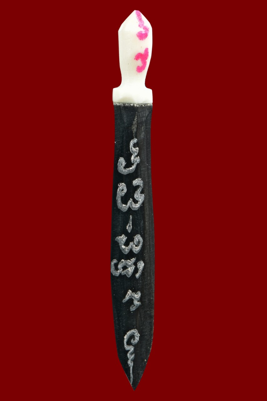 龙婆拉卡 (十面拉卡) 泰国 萨空那空府著名森林派高僧龙婆拉架师傅 【灭魔刀】2565年 5cm/2寸森林派高僧龙婆拉架大师 用上最古老抗鬼的灭魔刀材质 水牛 角(刀身)及象骨 (刀把)每一把灭魔刀刀身都是由师傅亲自刻上经文符咒 刀把就写上符咒 有着抗邪档鬼 反弹降头 增财运 人缘运 事业运之作用 但必须带在身上才能发挥作用 亦可以放在身宅大门门槛上 有镇宅 保家宅平安的作用 如面向医院或坟场亦可以放在屋内窗口上 如店铺就可以放在店铺大门门槛上 有增财 招客人作用