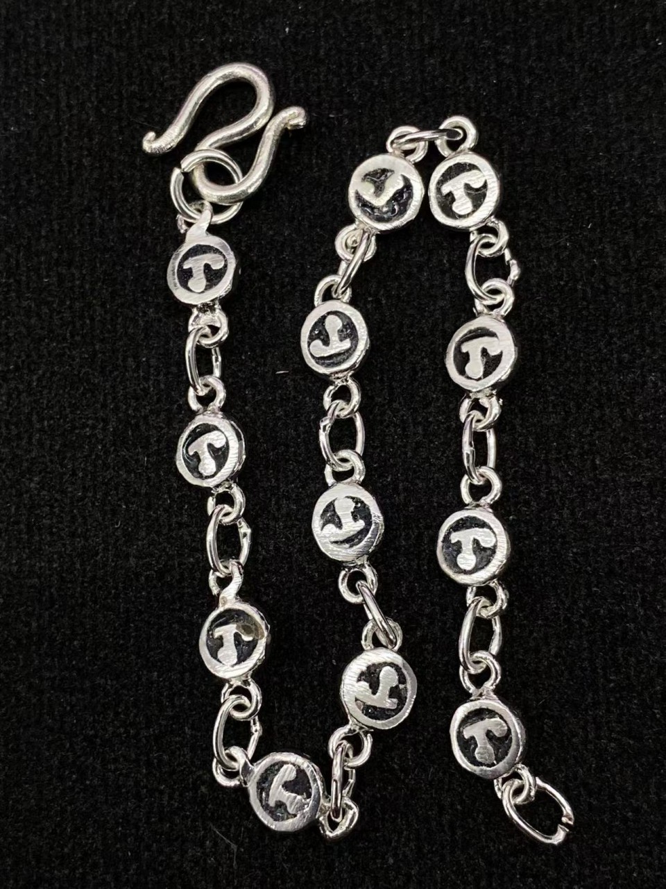 裸牌。婆谭凯·2510年·纳摩手链,纯银材质 约19cm。namo 国泰南部(Na Mo)关于Na Mo Pu Ta YaNa 代表 : Gakusandho Buddha(“Na”是泰国经里咒的经头,不管要进行何种式仪,都先须念“Namotasa Bagawato Ahrahato Samma Samputatsa”三遍,就这是以“Na”为之头意。而这且个“Na”字是威无力边的,可行使百一零八种变,化视行使咒此者的意愿与意念)Mo 代表 : Gonakamano BuddhaPu 代表 : Gassapo BuddhaTa 代表: Sakayamuni Kotama Buddha 是这这个时代的佛Ya 代表: Sri Ariyametrai Buddha 这是代表未来佛的在泰国许的多经文中或是咒符中都有隐这藏五尊佛的名字,在泰国修有为的师在傅写这个文经时,会先从Na开始写起从中往间外写,在写同的时会透过高超心的灵能量,念灌力入经文中。并且心内诵念Na ka ro Ho ti Sam pa wo,从一始开写到完写这个字为,止佛首经的摩纳佛珠寓意里哪不好就把他放哪到里,好运就会到来。同时和其他佛佩牌戴,以可提升其他佛牌的量力。